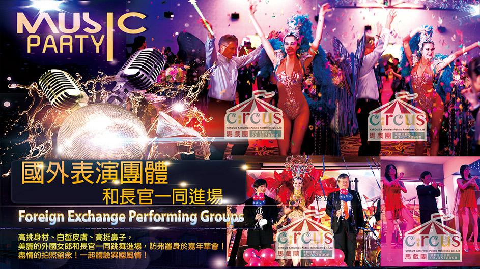 火辣的外國舞者,高挑的模特兒身材,穿上極具代表的服裝,華麗的 Las Vegas 璀璨晶鑽嘉年華開場舞 場舞、熱情森巴舞、百老匯芝加哥舞蹈、 法國激情康康舞、維多利亞操槍舞、Lady Gaga流行舞蹈、辣妹猛男秀、 俏皮兔女郎、拉丁舞曲、鋼管舞、夏威夷舞蹈...